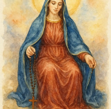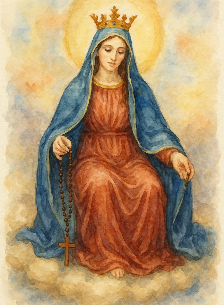 The title “Queen of the Rosary” reminds us that Mary reigns not by force but by intercession — she leads us into deeper communion with her Son. She does not detract from Christ but points to Him, molding souls to reflect His love.