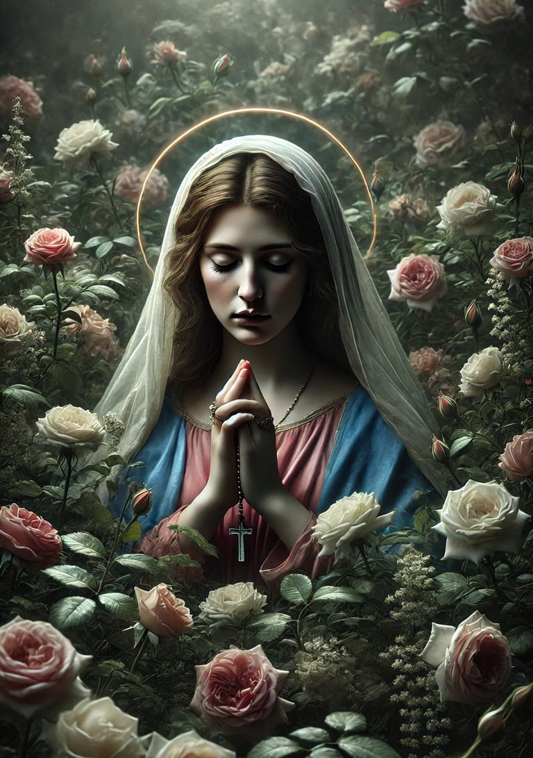 The Rosary has been called a “weapon” for spiritual battles. Through its decades and mysteries, we are drawn into the life of Christ, with Mary as companion, guide, and mother. Each “Hail Mary” is a rose we place before her throne, uniting our hearts with her contemplative gaze toward Jesus.