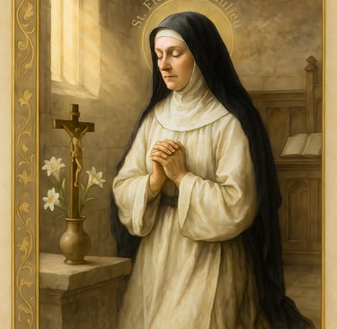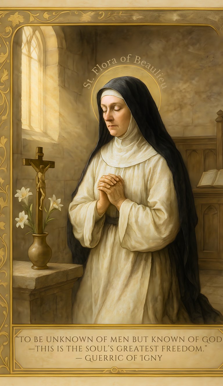 In the gentle hills of southern France during the early 1300s, a young woman named Flora of Beaulieu turned from the privileges of nobility to embrace the quiet life of a Cistercian nun. Born around 1300 in Auvergne, she entered the Abbey of Beaulieu, where silence, simplicity, and prayer shaped daily life. Misunderstood for her mystical fervor, Flora endured suspicion and ridicule from some of her sisters, yet she answered every wound with humility and obedience, offering her hidden suffering to Christ.