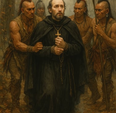 In 1642, while traveling with companions to Quebec, Jogues was captured by Mohawk warriors. For over a year, he was tortured, enslaved, and humiliated. His hands were so mutilated that he could no longer properly hold the Host. Still, he prayed for his captors and offered his suffering as reparation for their salvation.