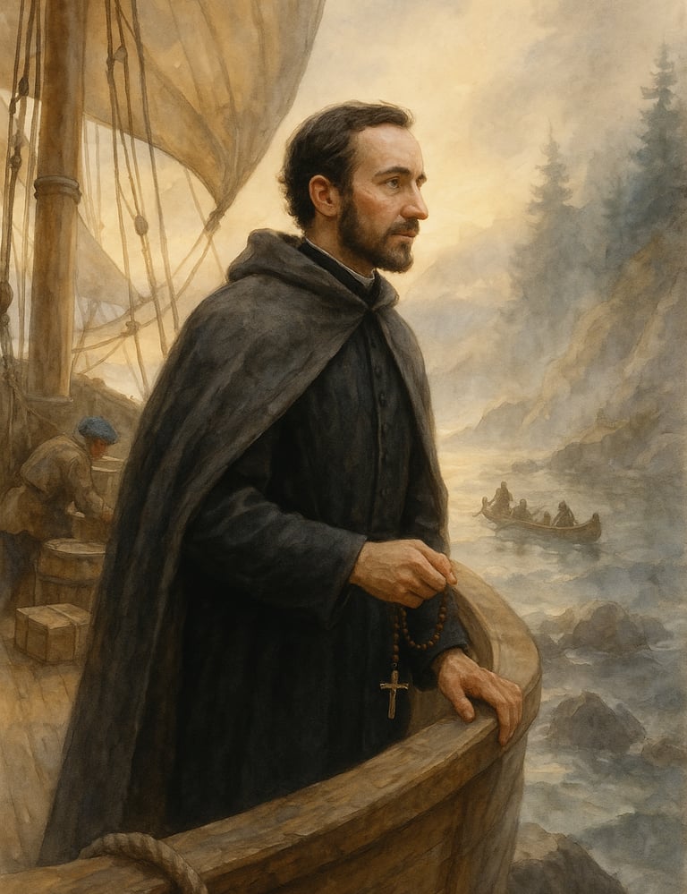 In the early 1600s, when much of North America was still untamed wilderness, a young Jesuit priest from Orléans, France, felt a call stronger than comfort. Saint Isaac Jogues (1607–1646) left behind a promising academic life to bring the Gospel to the Huron and Iroquois peoples of New France. Trained by the Society of Jesus, he carried within him the zeal of Saint Ignatius — a burning desire to “go anywhere for the greater glory of God.”