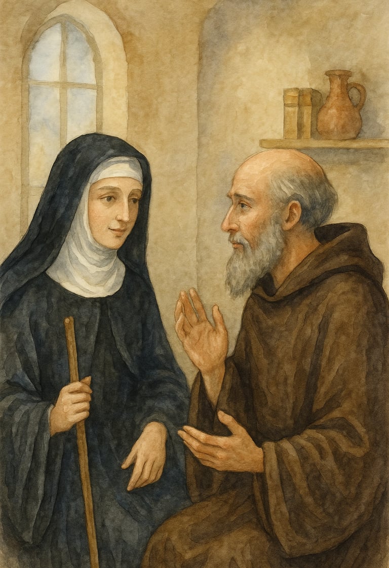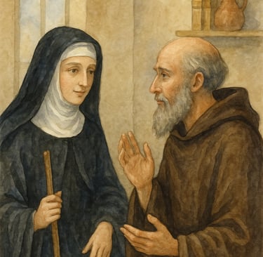 As a noble youth, Benedict was sent to study in Rome, the heart of the old empire. But what he found was moral decay and spiritual emptiness. Disillusioned, he left everything behind—seeking silence, solitude, and God.In the rocky hills of Subiaco, a holy monk named Romanus discovered the young seeker and gave him the monastic habit. At Romanus's urging, Benedict took shelter in a cave called Sacro Speco, where he lived in obscurity for three years, sustained by prayer, fasting, and the food Romanus lowered to him by rope.