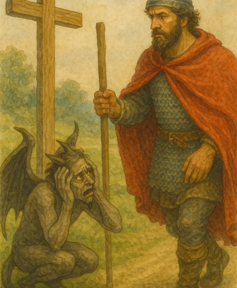 A dark, proud figure clothed in power and menace took him in as a servant. But Reprobus began to notice something strange. Whenever they came upon a cross or passed a place where Christ was honored, Satan would turn aside—visibly shaken. Reprobus demanded an answer.