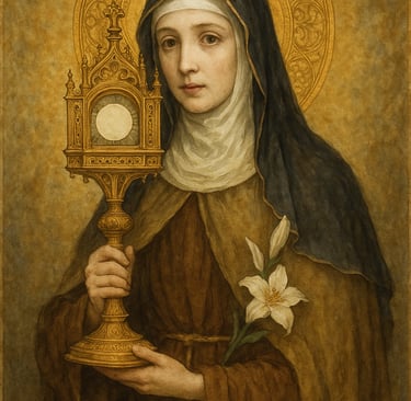 Born in 1194 to Count Favorino and Lady Ortolana, Clare was raised in luxury but taught by her mother that riches could chain the soul. In Lent of 1212, Clare heard St. Francis preach at San Giorgio. His words cut through her worldly future like a sword.