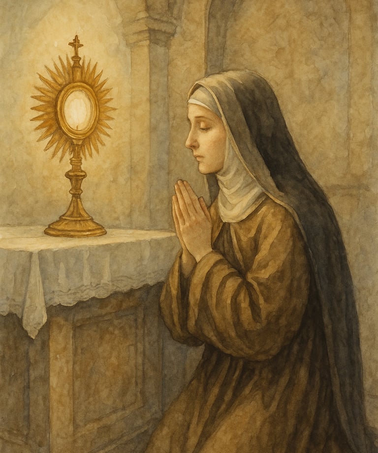 The Eucharistic Miracle (1240): When Saracen mercenaries sent by Emperor Frederick II advanced toward Assisi, Clare, too weak to stand, had herself carried to the gates. Holding the Blessed Sacrament in a monstrance, she prayed, “O Lord, protect these whom I cannot protect now.” The soldiers halted, terror seized them, and they fled without harm.