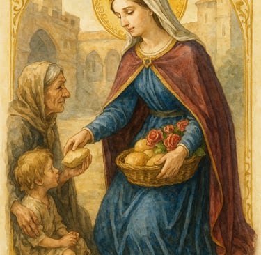 St. Elizabeth of Portugal (1271–1336) was not only a queen but a powerful peacemaker, devoted wife, and humble servant of the poor. Born into royalty—the daughter of King Peter III of Aragon and granddaughter of the great King James I—Elizabeth was named after her great-aunt, St. Elizabeth of Hungary, whose legacy of charity she joyfully inherited.