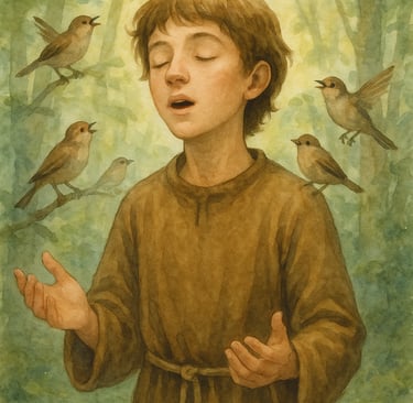 Harvey’s soul was filled with the psalms, and though he could not read, he memorized Scripture through chant. As he sang in the forests, birds would gather around him—and some say they sang with him in perfect harmony. Nature recognized the beauty of a soul so close to God.