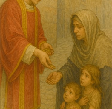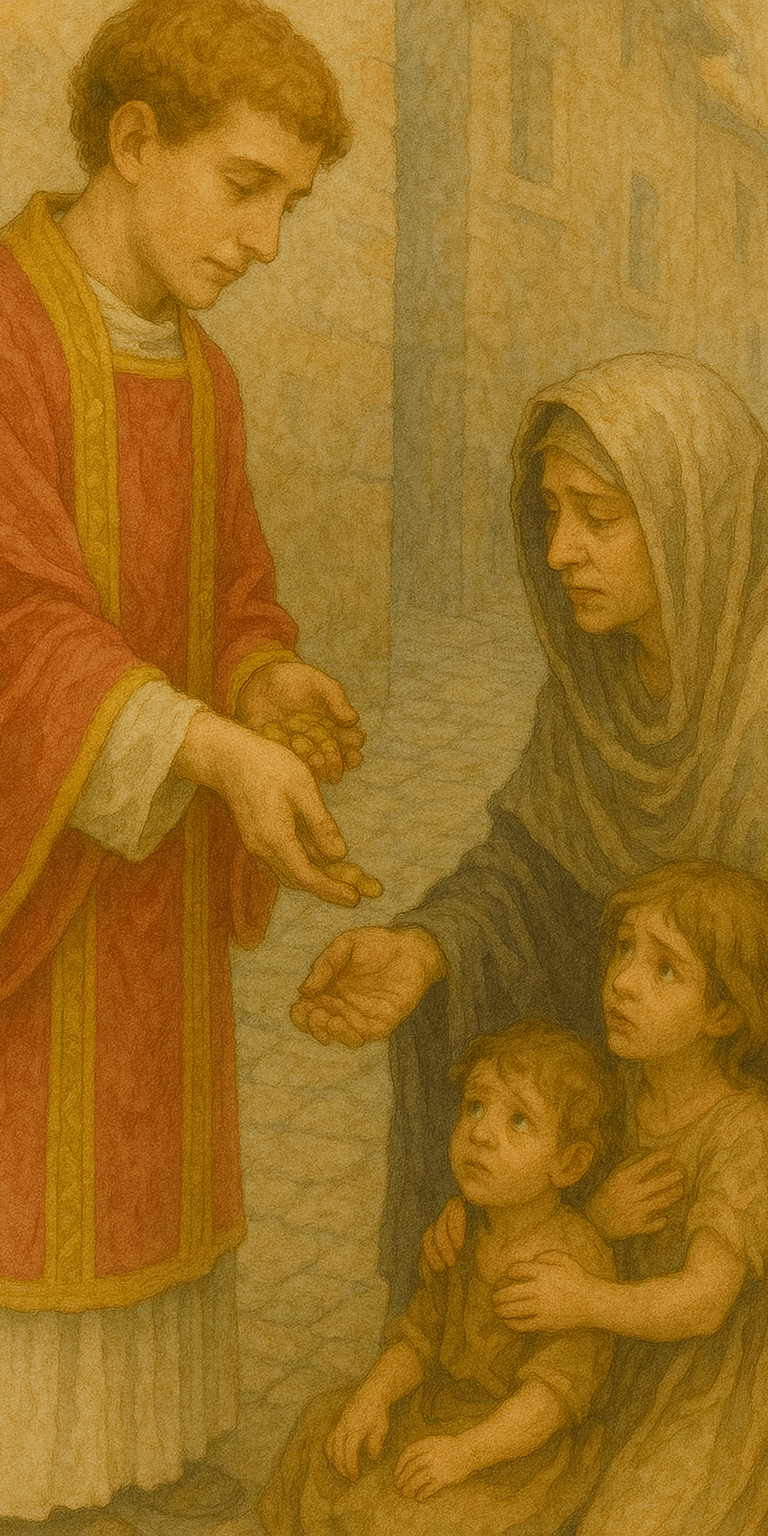 Those three days became his final ministry. Working quickly and without hesitation, Lawrence transformed gold into bread, sacred vessels into shelter, and distributed every coin among the poor, widows, orphans, and sick. By the appointed day, the Church’s wealth had been poured entirely into the hands of those Christ calls “the least of these.”