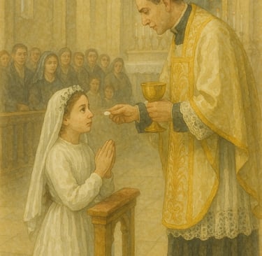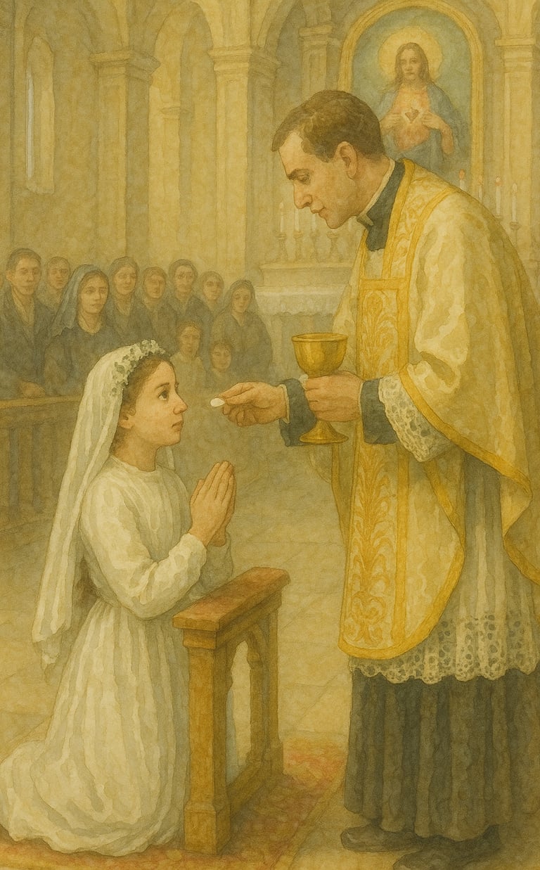 From an early age, Maria developed a profound love for Jesus in the Eucharist and for Our Lady. At a time when many children had not yet begun catechism, Maria had already received her First Communion. She was known for her modesty, quiet joy, deep prayer life, and unwavering moral strength.