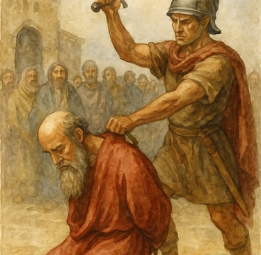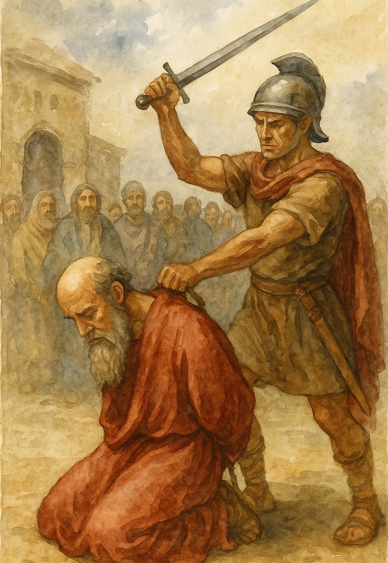 Paul was eventually arrested and executed by beheading in Rome under Emperor Nero around 67 AD, a martyrdom traditionally believed to have occurred near the Via Ostiensis.