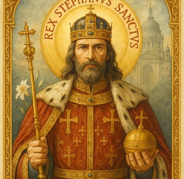 At the turn of the first millennium, the Magyars were still a restless people on the plains of Central Europe, torn between pagan customs and the Gospel. Into this moment stepped Vajk, son of Grand Prince Géza. Baptized and given the Christian name Stephen, he became the first King of Hungary and the architect of a Catholic nation.